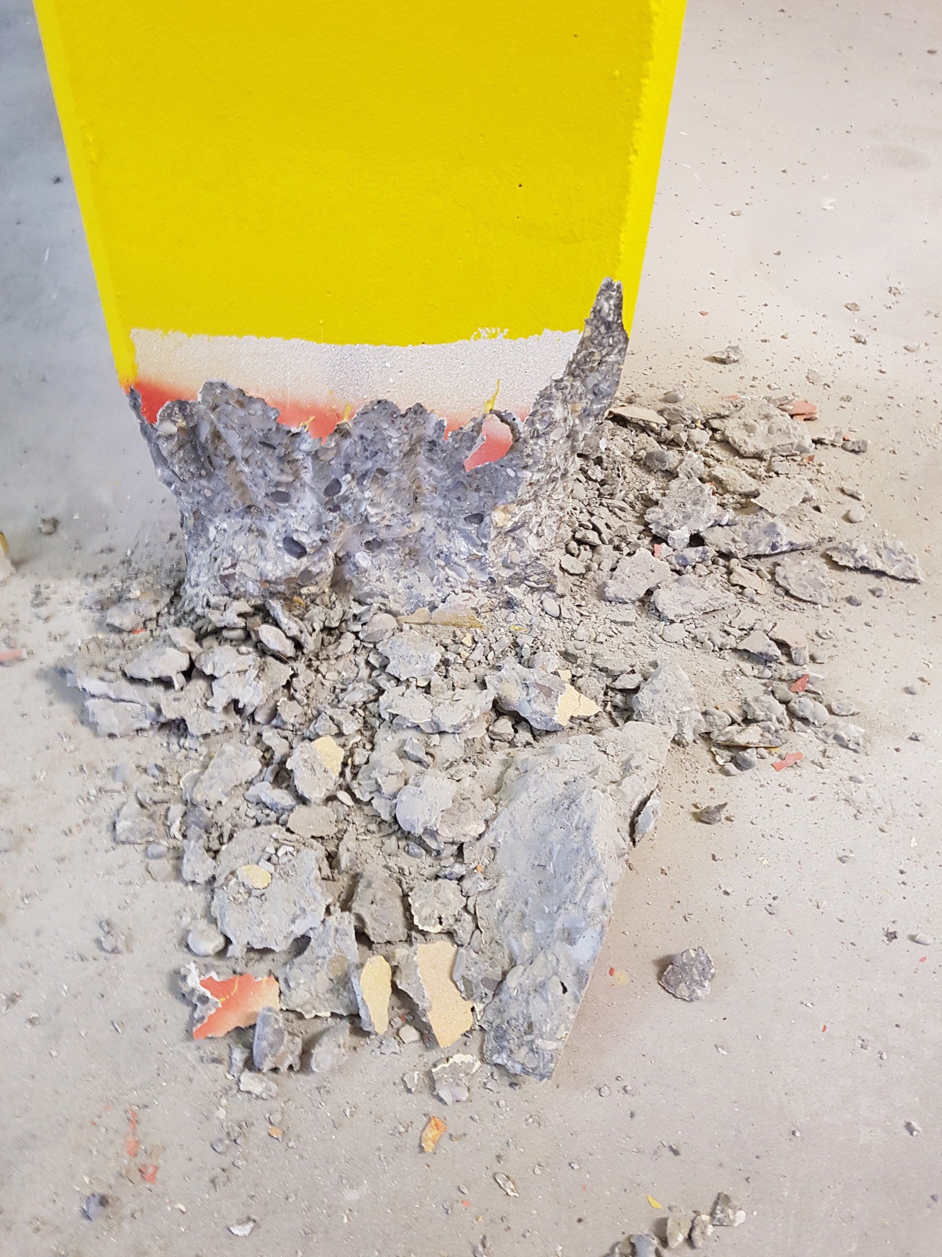 betroffen. Der Grund, durch Sauerstoff und Wasser beginnt innerhalb des Betons eine chemische Reaktion, die Carbonatisierung. Früher oder später beginnt deshalb die in Stahlbeton enthaltene Armierung zu rosten. Derart beeinträchtigter Stahlbeton zeigt häufig Risse und aufgeplatzte Stellen.
